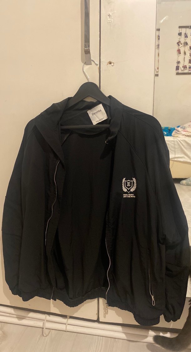 Uzun kollu, bisiklet yaka ve bol kesime sahip siyah kadın ceket. Fermuarlı ve yumuşak, sıcak tutan polar kumaştan üretilmiştir. Baskılı detaylarıyla ofis ve günlük kullanıma uygundur.