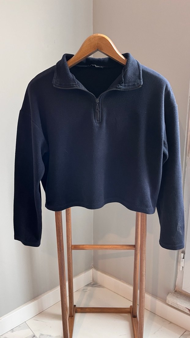 Lacivert Fermuarlı Kadın Sweatshirt