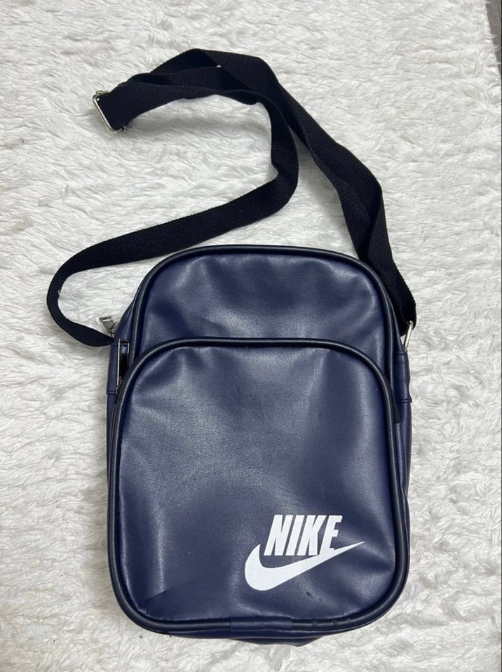 Lacivert suni deri nike yazılı çanta çok bir deformesi yok sadece en son fotoğrafta gibi fermuarın yan tarafı biraz incelmiş .