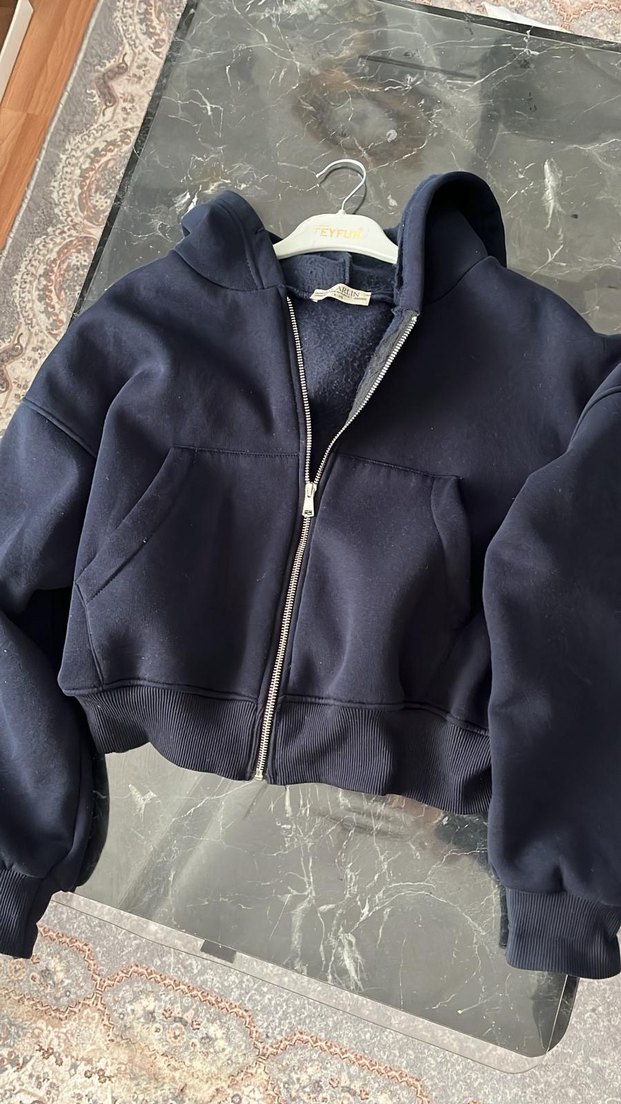 Lacivert renkli, fermuarlı ön kısım, uzun kollu ve yuvarlak yakalı sweatshirt. Bol kesim ve kısa boyda, yumuşak ve sıcak hissettiren kumaştan üretilmiştir. Rahat sokak stili için uygundur.