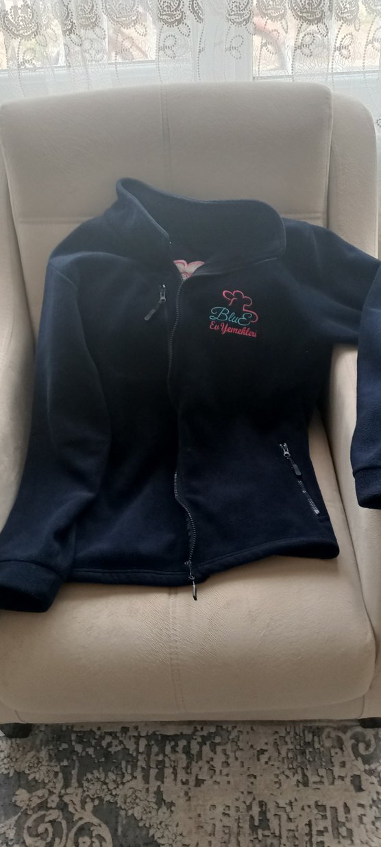 içkoyu mavi renkli, uzun kollu, fermuarlı cepli ve baskılı tasarımlı, dar kesim sweatshirt. Günlük ve sokak stiline uygundur.