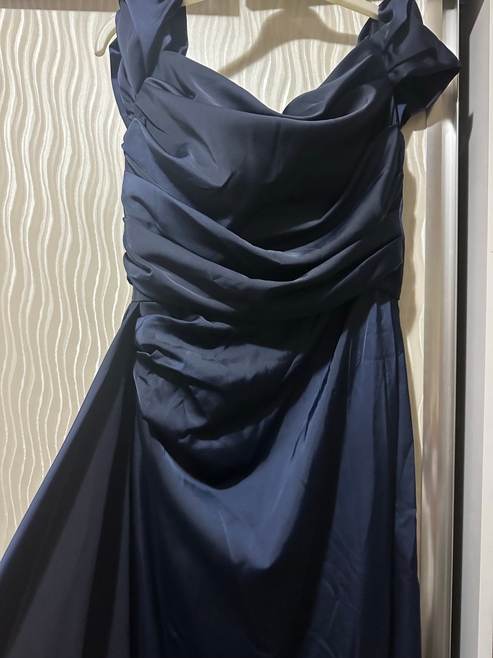Lacivert gece elbisesi.
