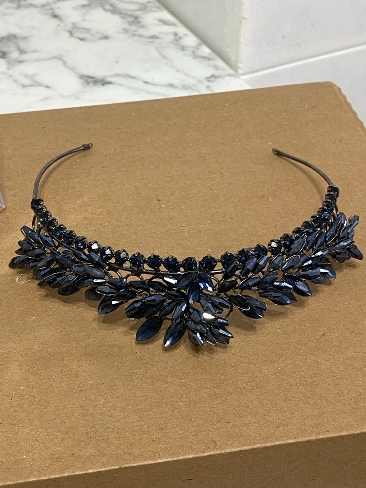Lacivert cam boncuklarla süslenmiş gotik tarzda şık ve klasik görünümlü saç aksesuarı.