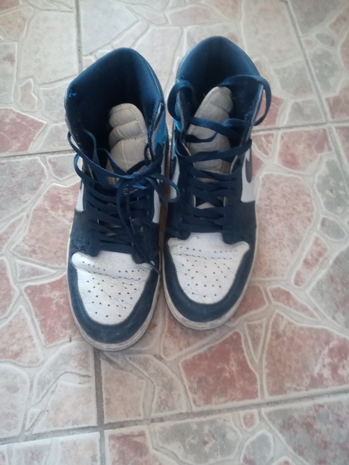 Bağcıklı, lacivert ve gri renkte, kauçuk tabanlı, desen içermeyen basketbol ayakkabısı, spor ve sokak stiline uygun.