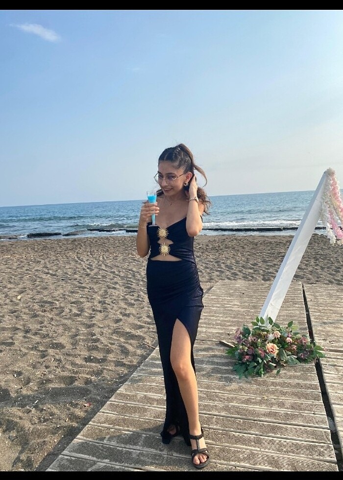 Lacivert Güneş Aksesuar Detaylı Abiye & Mezuniyet Elbisesi