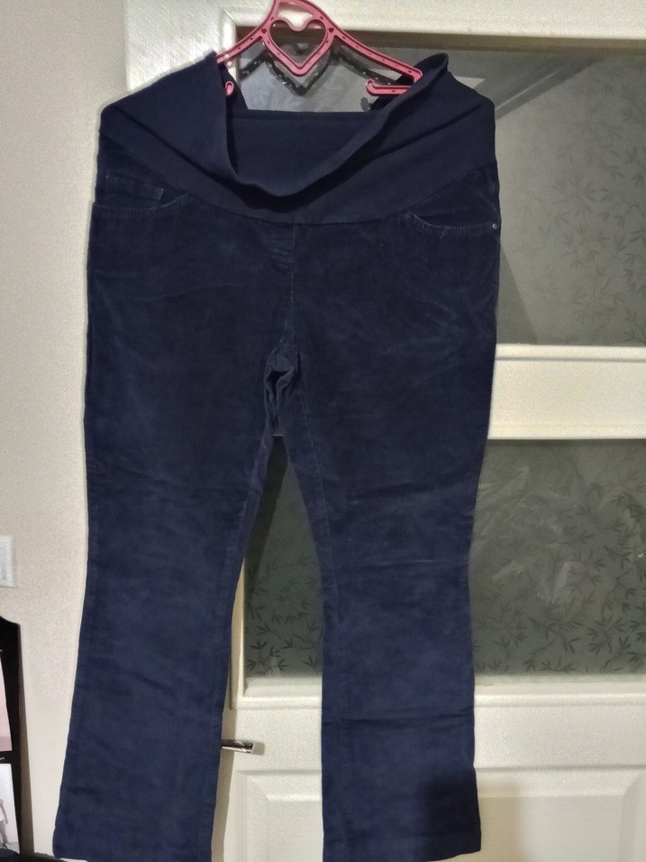 Lacivert kot kumaştan, kemerli ve normal boyda, günlük kullanıma uygun, vücuda oturan hamile pantolonu.