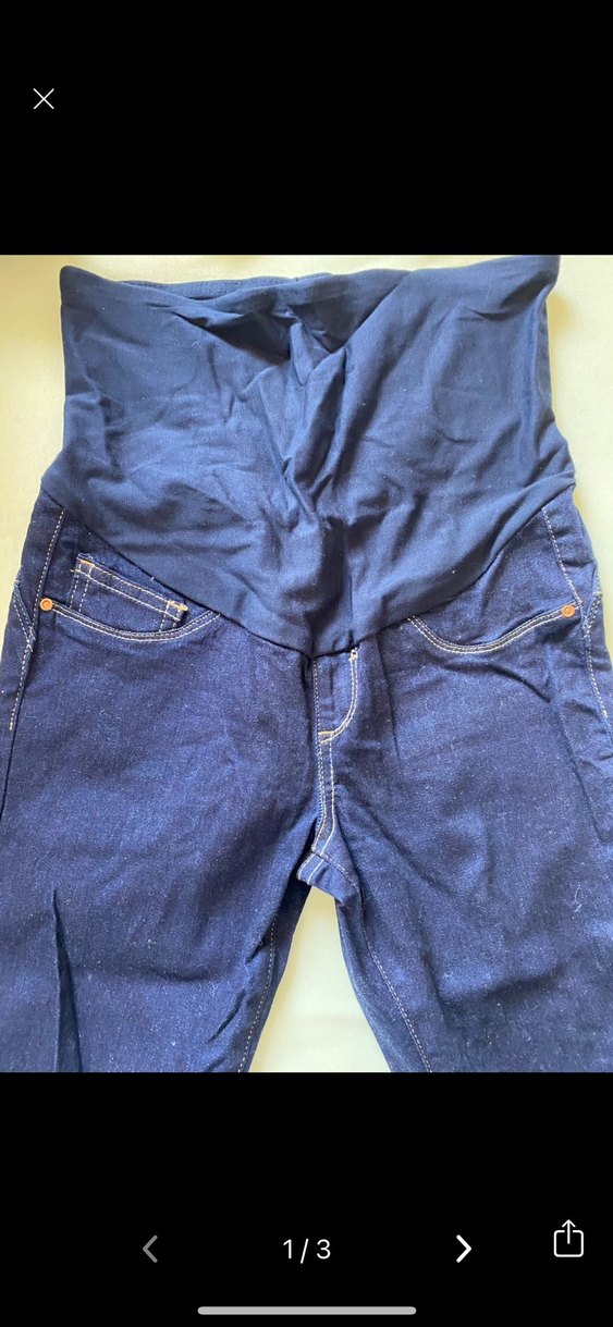 Lacivert kot kumaştan, destekleyici yüksek bel bantlı dar kesim hamile pantolonu. Tokalı detaylı, normal boyda, günlük kullanıma uygun.