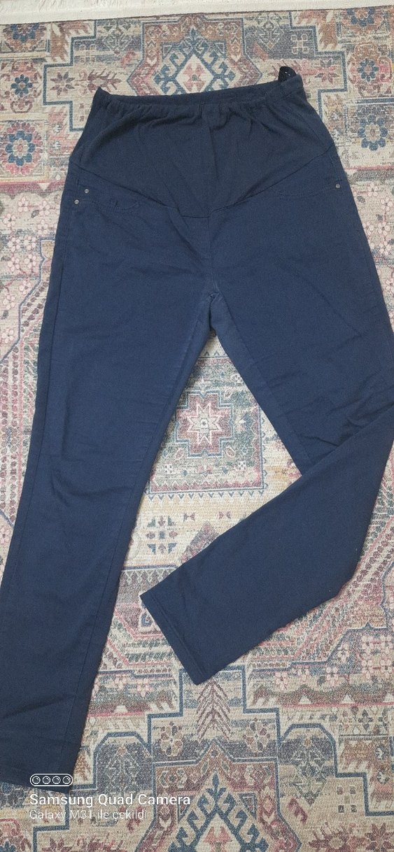 Lacivert renkte, normal boy ve regular fit hamile kot pantolon, günlük kullanım için rahat ve şık bir tercihtir.
