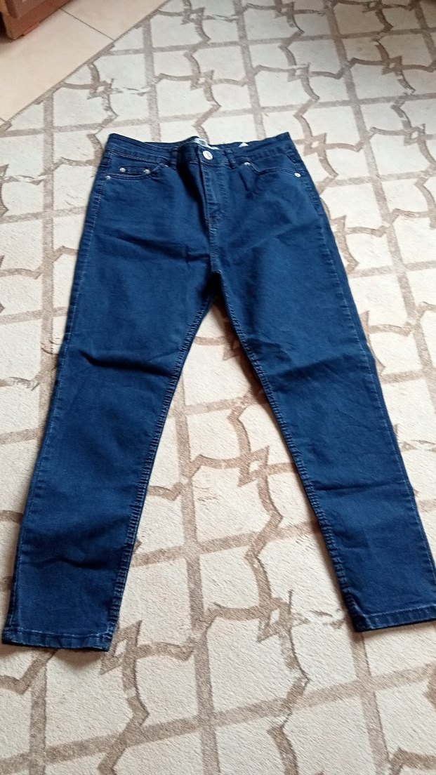 Kadınlar için mavi denimden yapılmış, normal boy ve regular fit kesime sahip, günlük kullanıma uygun rahat ve şık jean pantolon.