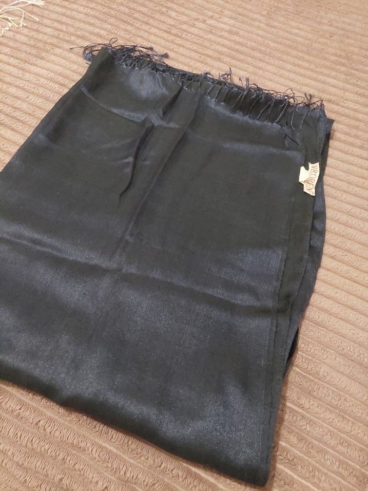 lacivert ipeksi kumaştan, püsküllü kenarları olan bohem tarzda kadın şalı. Yumuşak ve rahat dokusuyla dikkat çeker.