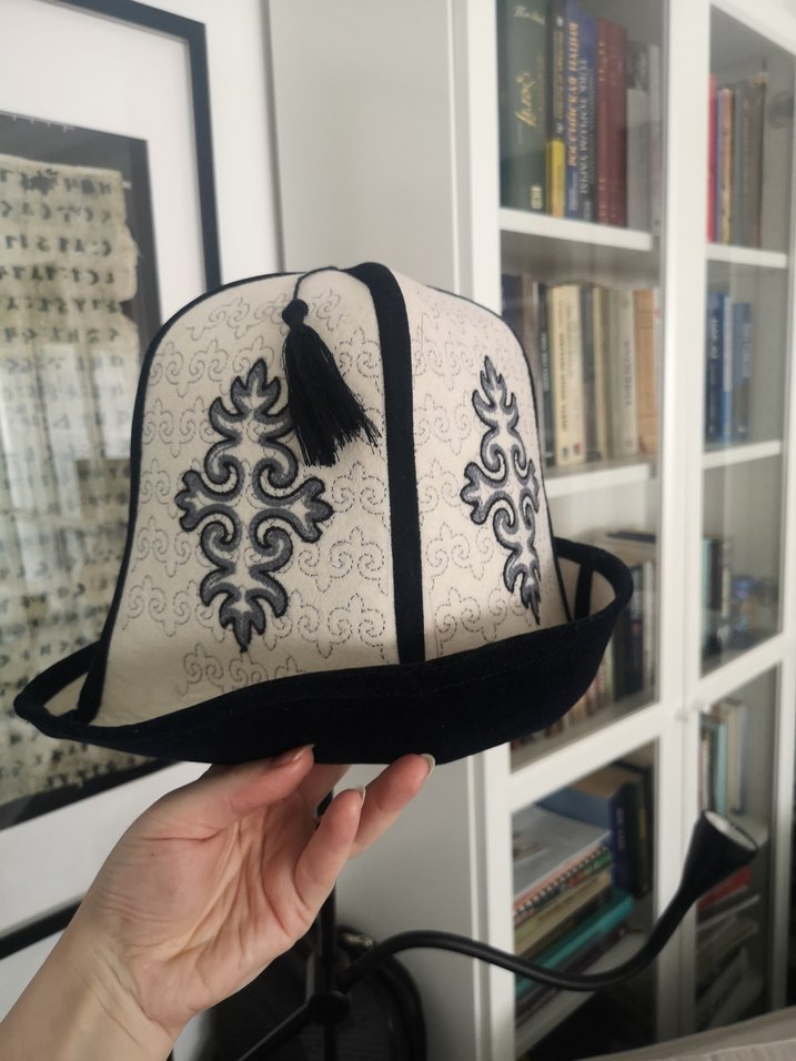 Kaliteli kadife detaylı geleneksel Kırgız erkek kalpağı