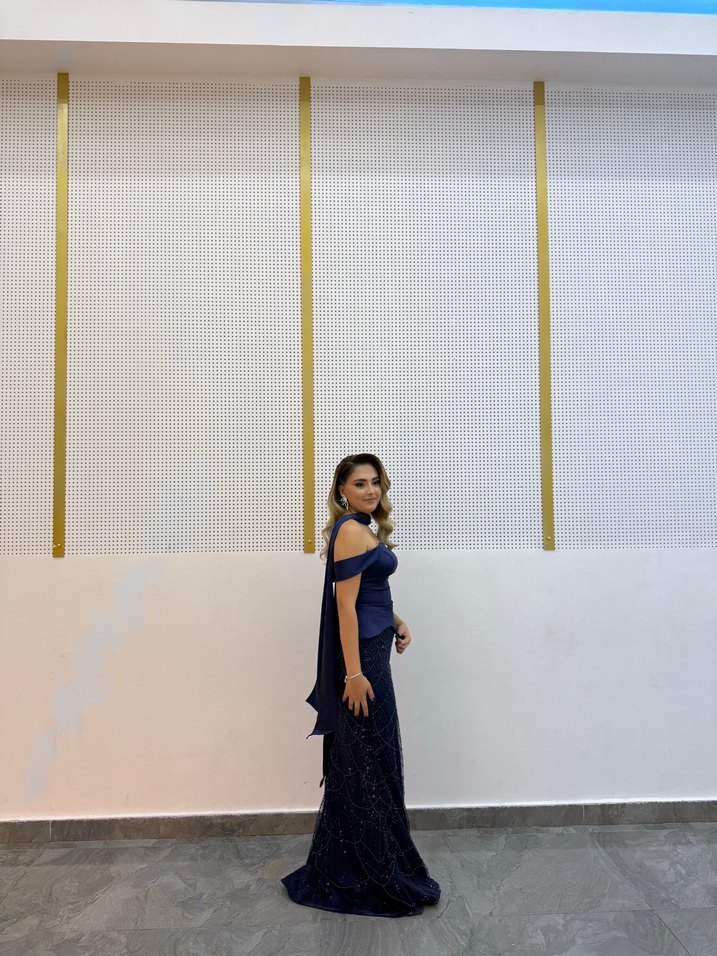 Lacivert İşlemeli Uzun Abiye Elbise