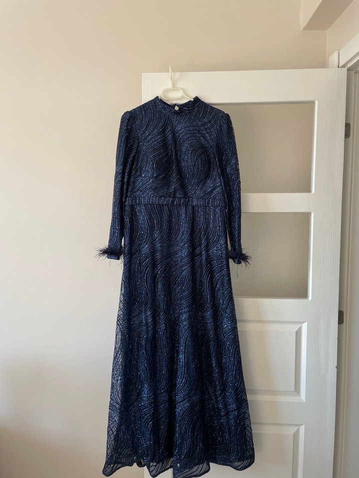 Lacivert, pileli ve işlemeli uzun kadın elbisesi. Uzun kollu ve yüksek yakalı, vintage bohem tarzında, rahat kesim. Düğünler için uygun. Söz elbisemdi 1 kez kullandım kuru temizlemesi yapıldı birdaha hiç kullanılmadı hiçbir kusuru yoktur yeniden daha yeni
