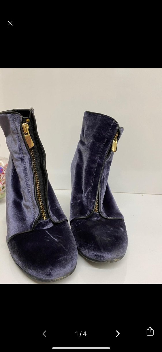 Koyu mavi kadife stiletto topuklu 10 cm ve ön fermuarlı kadın botu.romantik akşamlar ve avant-garde moda için ideal.