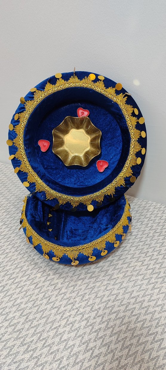 Lacivert Kadife Süslemeli gelin kına sepeti