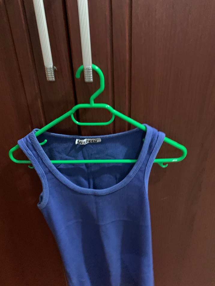 Lacivert renkte, dar kesim ve bisiklet yaka kadın atlet. Günlük rahat ve şık athleisure tarzına uygundur. Normal boyda ve düz yapıya sahiptir.