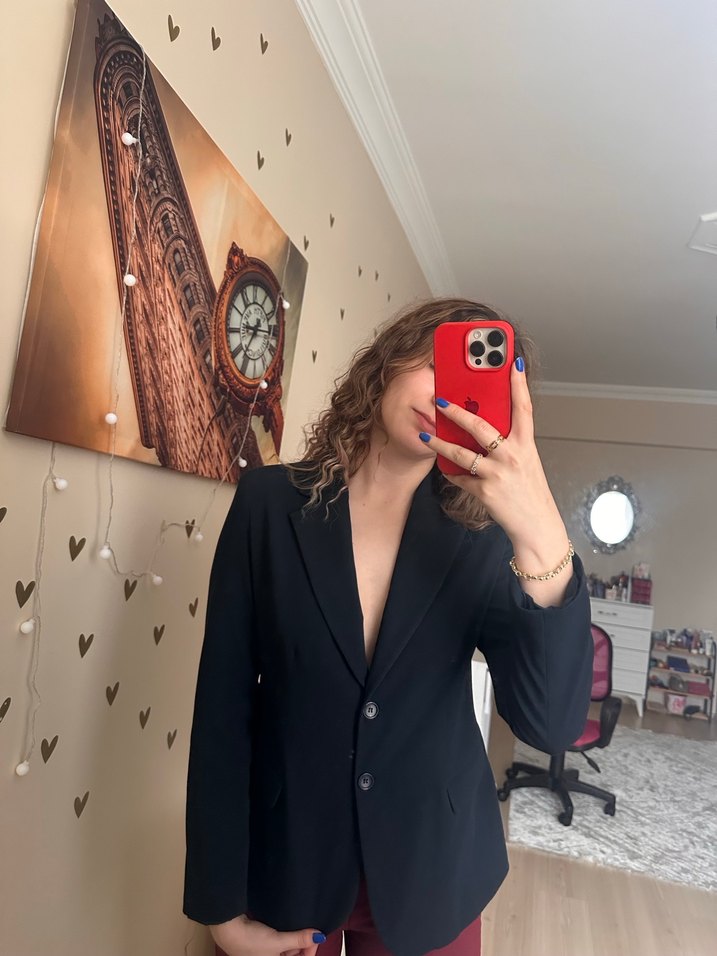 düğmeli, uzun kollu ve kesimli bu blazer, ofis ve sokak stili için uygun sentetik kumaştan üretilmiştir. Az kullanıldı