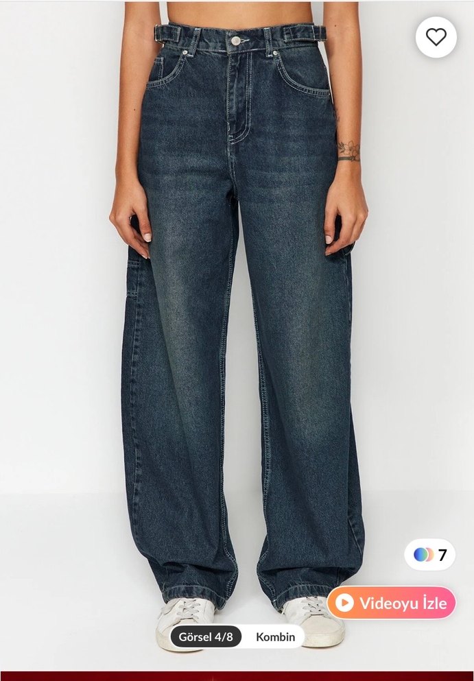 Lacivert renkte, bol kesim ve midi boyda denim pantolon. Günlük kullanıma uygun, rahat ve şık bir sokak stili sunar.