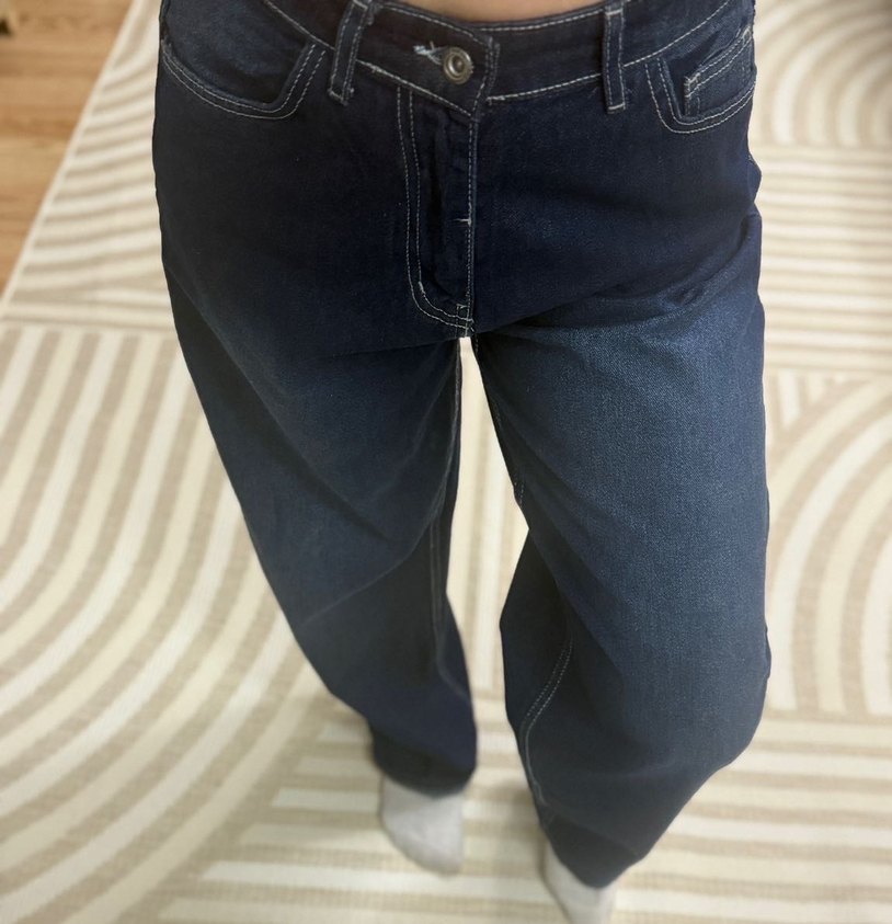 Lacivert kot pantolon, bol kesim ve midi boy uzunlukta. Günlük sokak stiline uygun, rahat ve şık bir tasarım sunar. hiç giyilmedi yepyeni