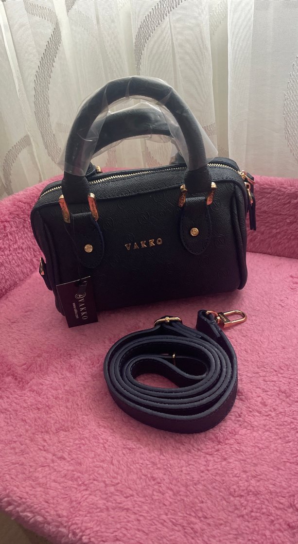 Lacivert deri kadın çanta, tokalı saplar ve desenli yüzeye sahiptir. Çıkarılabilir askısı ve önünde VARRO markası bulunur. Günlük ve sokak stiline uygundur.