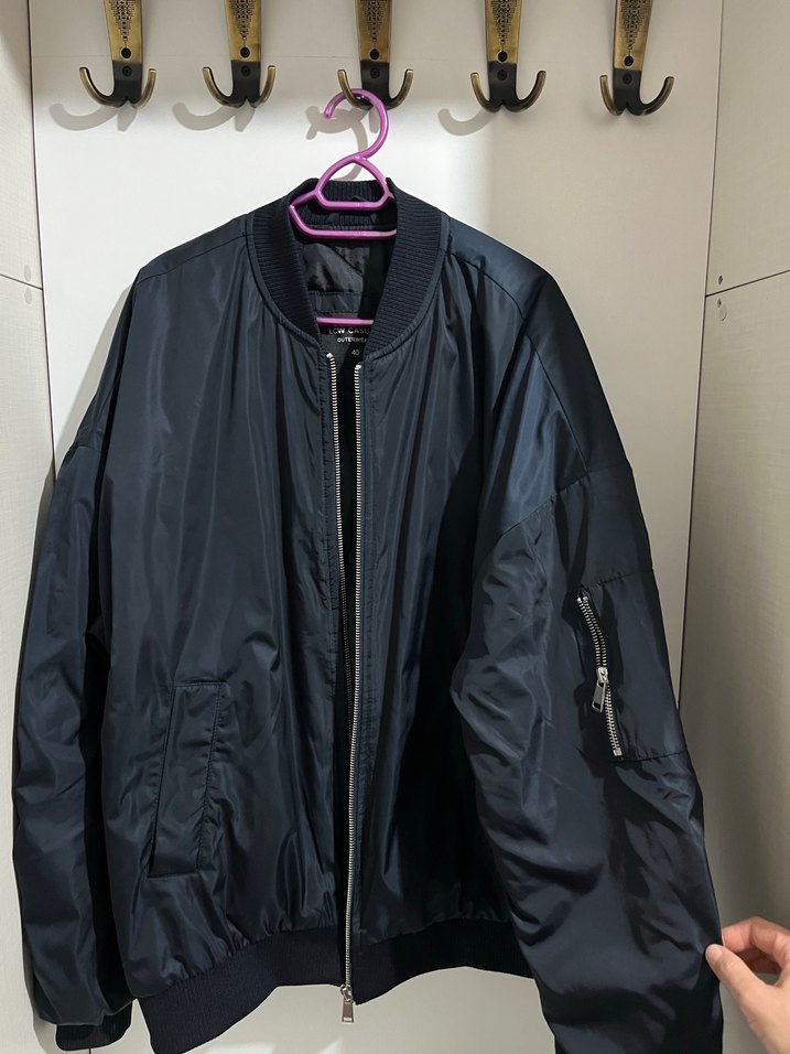 Koyu lacivert, fermuarlı, notched lapel yakalı, uzun kollu, sentetik kumaştan yapılmış, rahat kesim midi uzunlukta kadın street wear ceketi. Rengi lacivert hiç kullanılmadı.Bedeni 40 ama 38de giyer