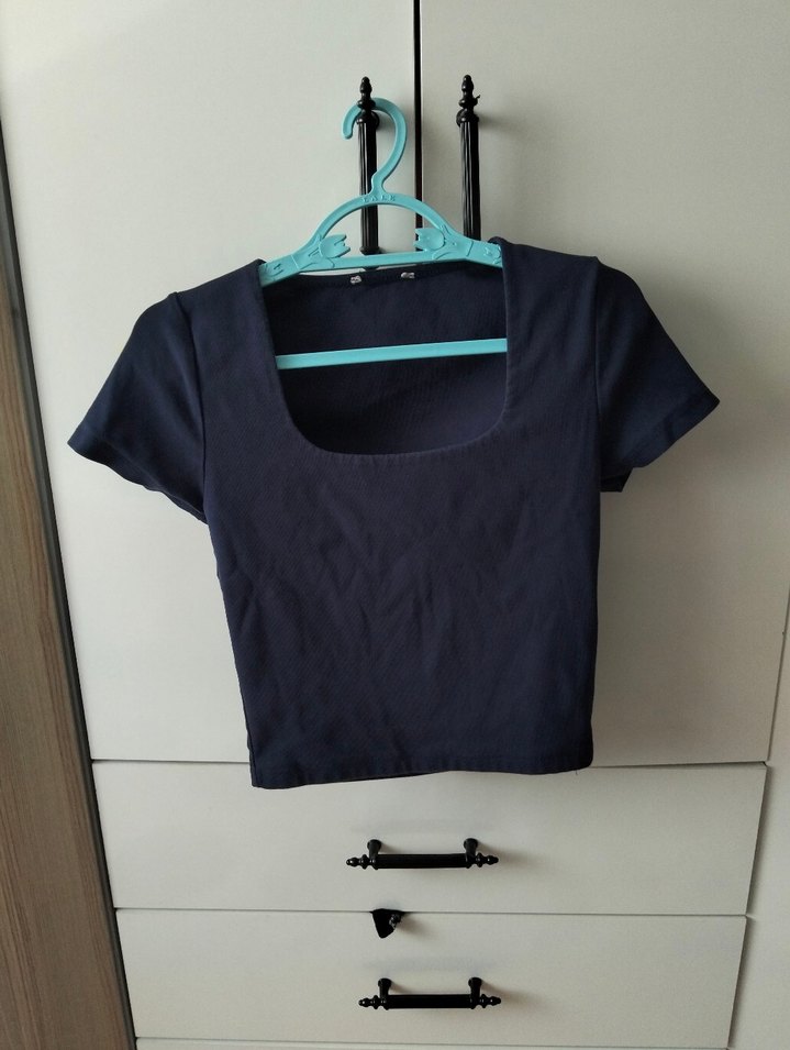 Lacivert renkli, kısa kollu ve kare yaka kadın crop top. Düz ve minimalist tasarımıyla sentetik kumaştan üretilmiştir. Outdoor şıklık için uygundur.