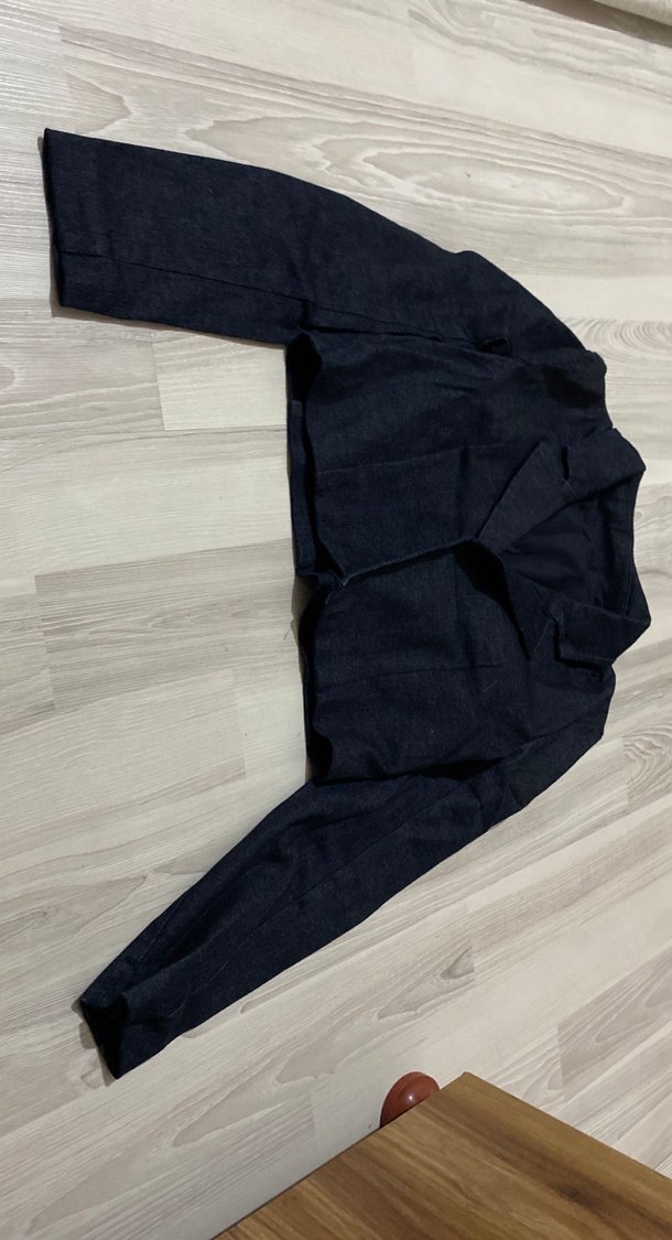 Kadınlar için lacivert denim ceket, çıtçıtlı ve uzun kollu, normal uzunlukta ve rahat kesimlidir. Günlük kullanıma uygundur.