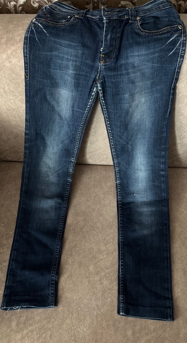 Lacivert renkli, dar kesim, orta boy denim pantolon. Tokalı detayıyla gündelik ve normcore tarzına uygundur.