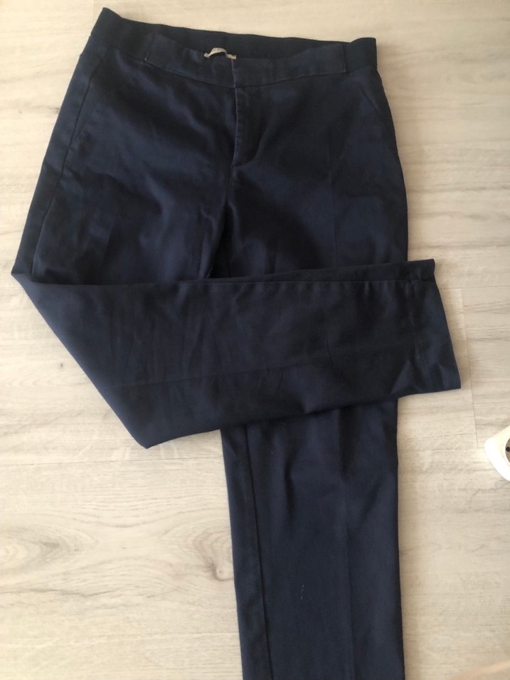 Lacivert kadın denim kumaş pantolon, normal boy ve regular fit. Ofis ve iş ortamları için sade, temel ve zahmetsiz şıklık sunar.