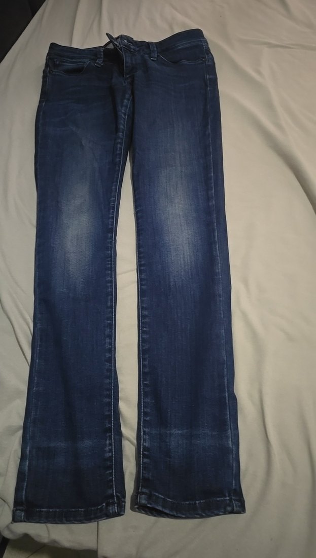 Lacivert renkli, kemerli bel ve normal boyda, rahat kesim kadın denim pantolon. Günlük kullanıma uygun klasik tarzda.
