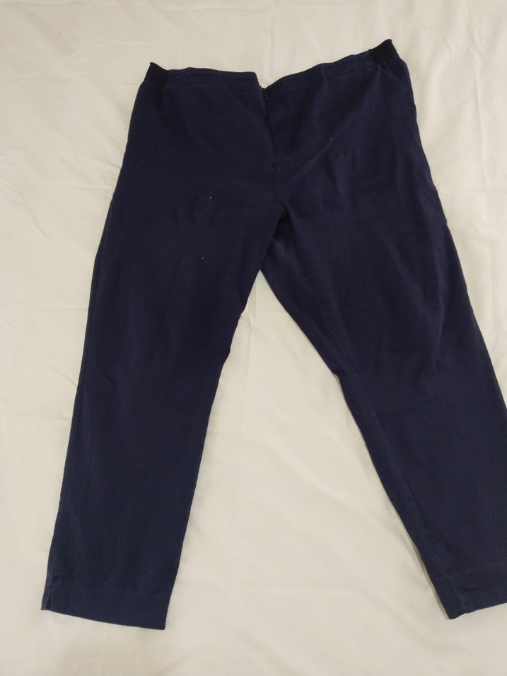 Lacivert renk, midi boy, salaş kesim kadın denim pantolon. Günlük kullanım için rahat ve şık bir tercih.