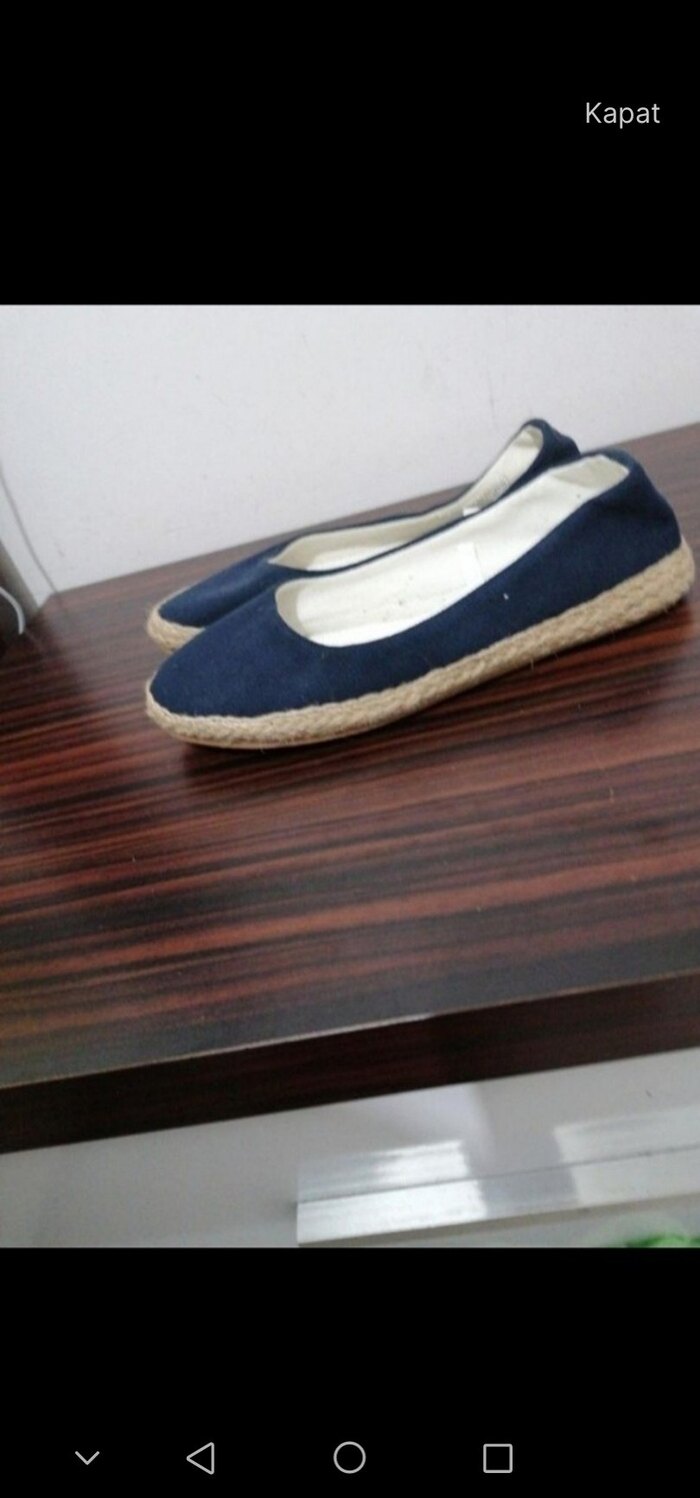 Lacivert renkte, dolgu topuklu ve kauçuk tabanlı espadril, günlük kullanıma uygun rahat ve şık bir seçimdir.
