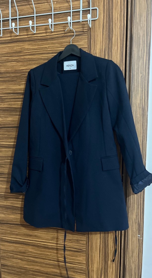 Lacivert Kadın Düğmeli Midi Blazer Ceket takım
