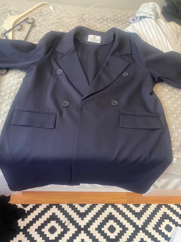 Lacivert renk düğmeli, normal kesim, kadın blazer. Uzun kollu, yakalı ve iş ortamına uygun sentetik kumaştan yapılmıştır. Uzun zamandır giyerim diye bekliyordum tertemiz sorunsuz