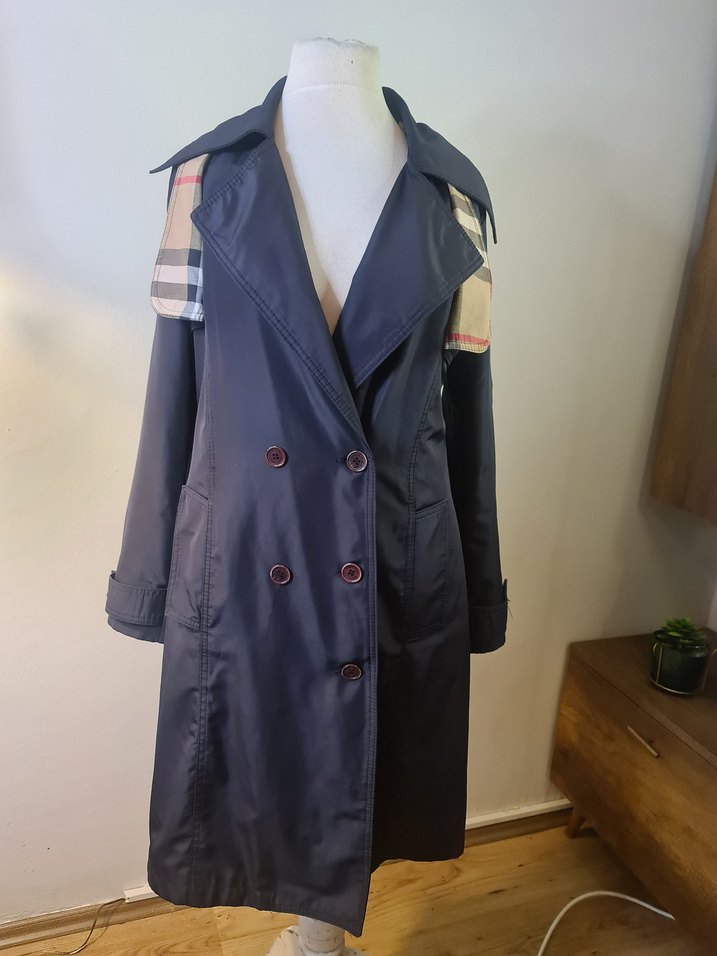 Lacivert Kadın Düğmeli Uzun Trençkot
