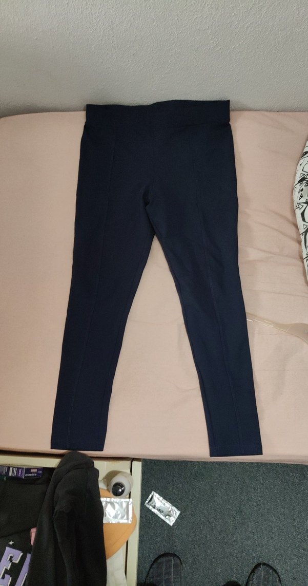 Lacivert renkte, regular fit kesim ve midi boy, elastik bel detaylı kadın pantolonu, sentetik kumaştan, günlük kullanıma uygun.