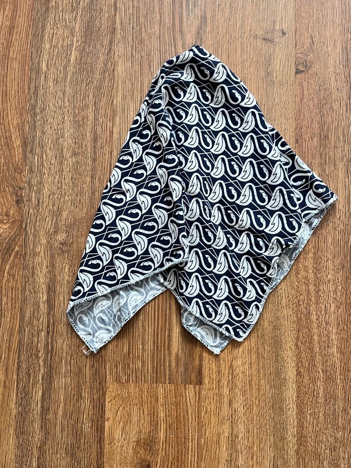 Kadınlar için , lacivert ve beyaz desenli tekstil fular, bohem ve retro sokak tarzlarına uygun. Marka temsilidir.