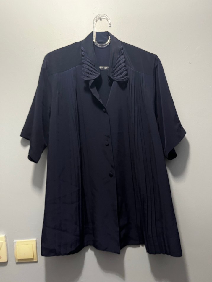 Lacivert Kadın Geniş Kesim kısa kollu gömlek