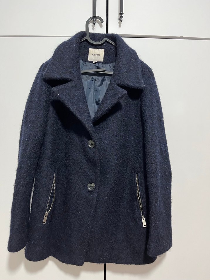 Lacivert renkte, dokulu kumaştan yapılmış kadın kabanıdır. İki fermuarlı cep ve düğmeli kapama özelliği vardır. Klasik yaka ve düzgün astarlı.