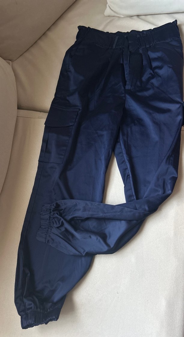 Lacivert renkli, kemerli ve rahat kesim kadın pantolonu. Saten tarzı yumuşak kumaştan, midi boyda ve desen içermeyen günlük kullanıma uygun.marka temsılıdır