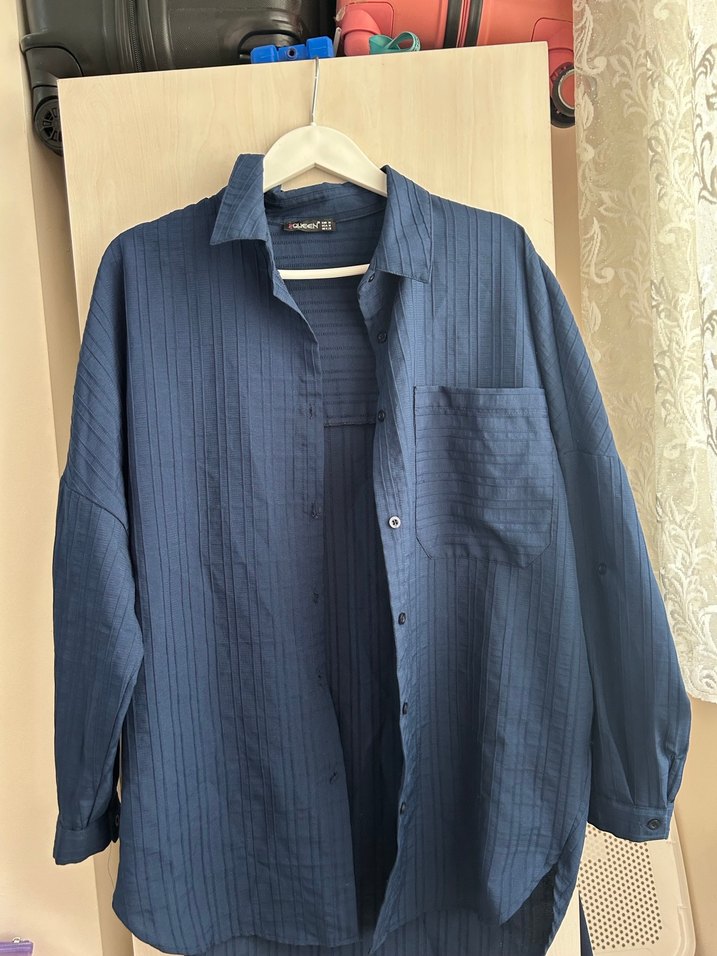 Lacivert keten kumaştan, düğmeli, uzun kollu, rahat kesim ve tek cep detaylı kadın gömlek. Günlük kullanıma uygundur.