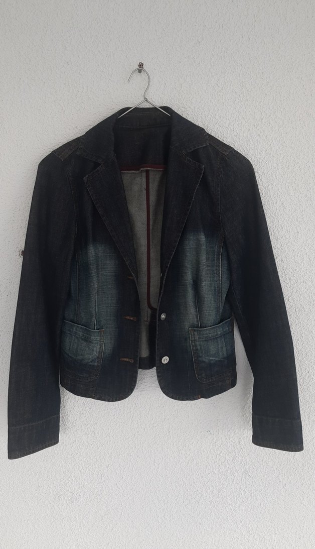 Lacivert kot kumaştan yapılmış, notched yaka ve düğmeli ön kapamalı kadın ceket. Uzun kollu, normal kesim, midi boy ve iki ön ceplidir. Günlük rahat kullanıma uygundur.