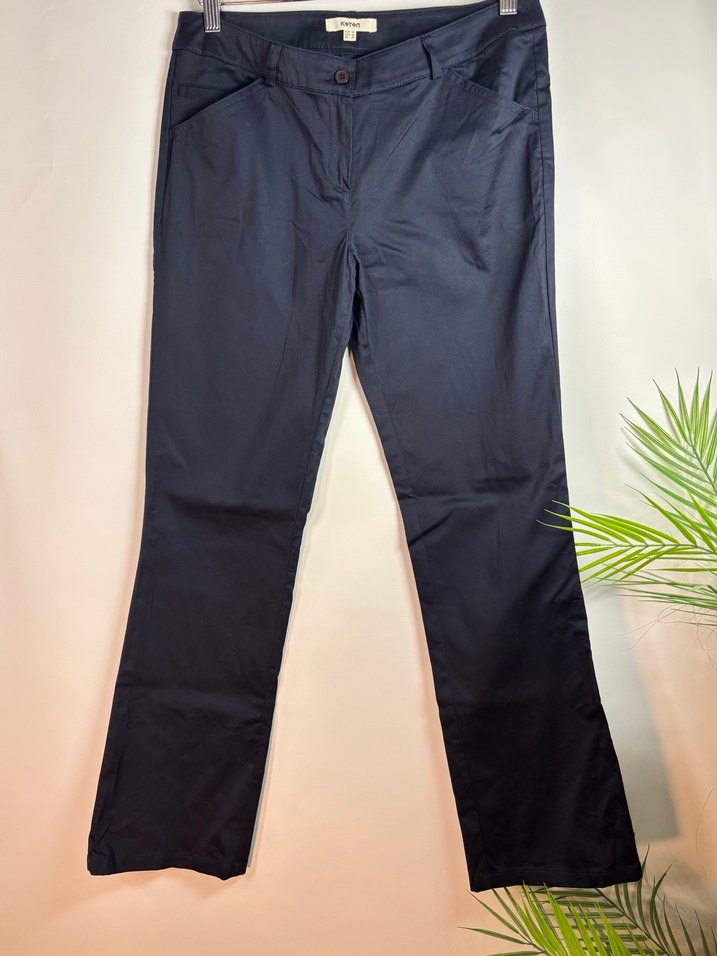Lacivert renkte, %97 pamuk ve %3 elastan kumaştan üretilmiş kadın kumaş pantolon. Normal boy ve rahat kesimle, desen içermeyen şık bir tasarıma sahip. Arka tarafında ütü izi mevcut görsellere ekledim. Fiyata yansıttım bu izi. 38 beden