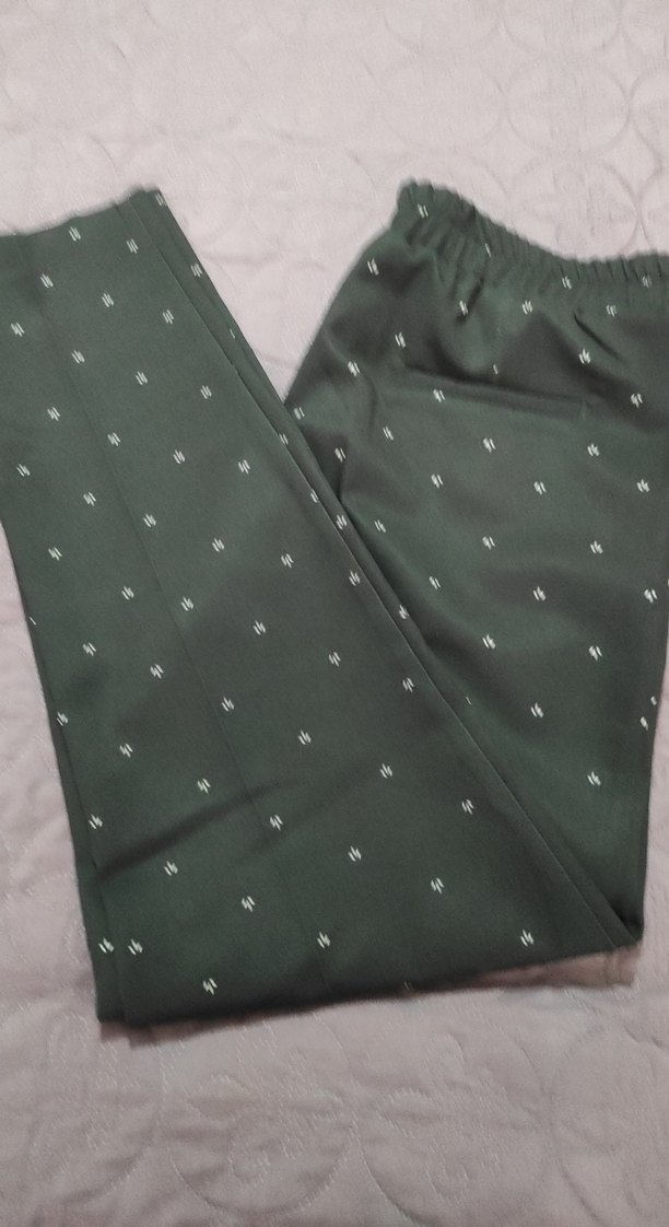Düğmeli, uzun boylu ve regular fit kadın kumaş pantolon. lacivert renkte, gri küçük desenlere sahip, sentetik kumaştan yapılmıştır. Minimalist ve normcore tarzda, günlük kullanım için uygundur. rengi fotoğrafta soluk çıktı bı sıkıntısı yok hiç kullanilmadi