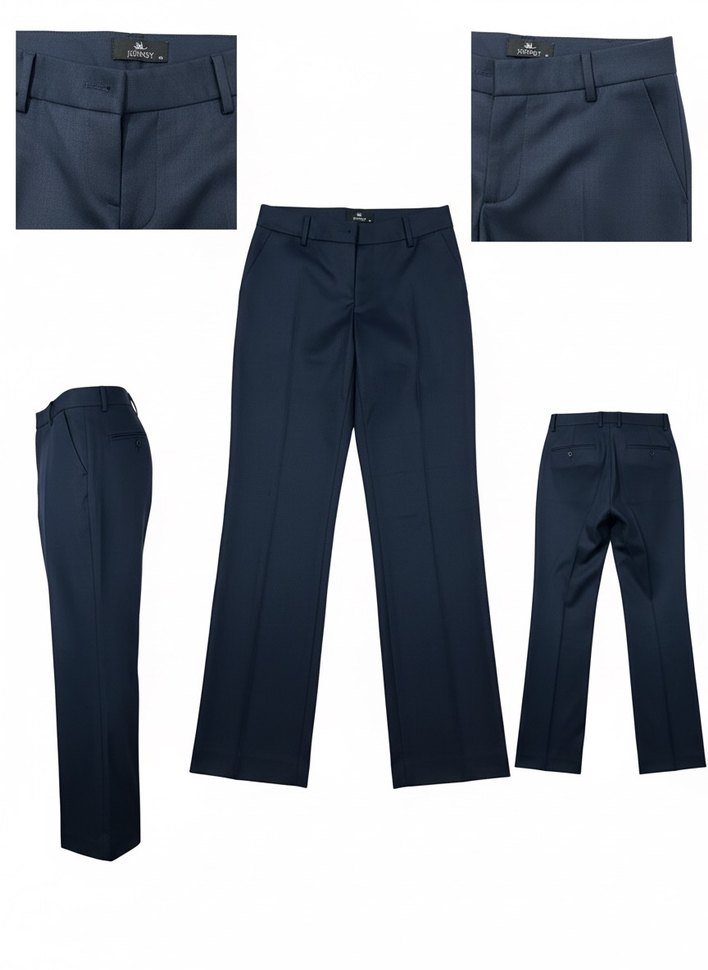Lacivert kot kumaş pantolon, kadınlar için normal kesim ve midi boy. Desensiz, ofis ve iş ortamına uygun rahat şık tarz sunar. Orijinal Journey marka