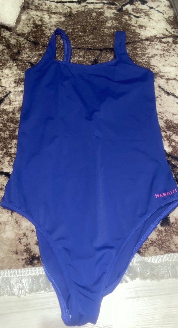Lacivert, orta boy kadın mayo. Düz ve desen içermeyen tasarıma sahip, NABAIJ markalı plaj kullanımı için uygun şık mayo.