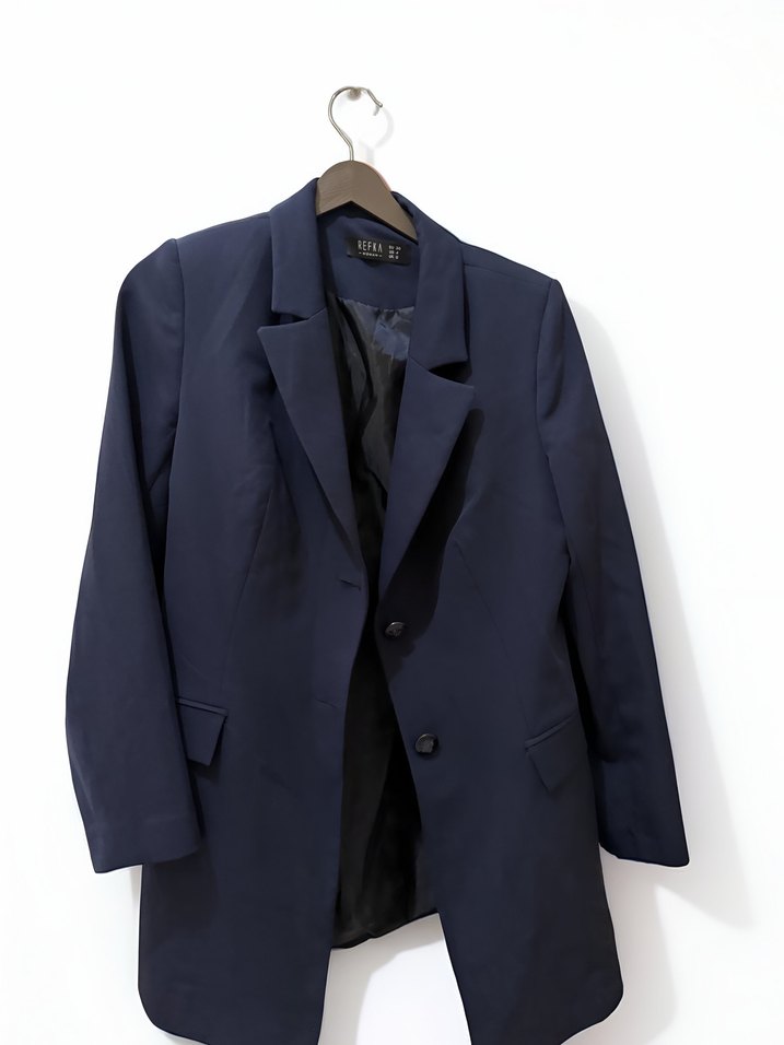 Lacivert, düğmeli, kadın blazer ceket ve pantolon Normal kesim, midi boy ve yakası kesimli, iş ve günlük stil için uygun. ✨