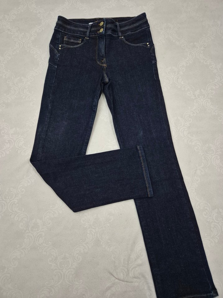 Lacivert renkte, düğmeli, regular fit kadın kot pantolon. Günlük kullanıma uygun, sade ve desen içermeyen tasarım. Tamamen likralı ve yeni ürün..