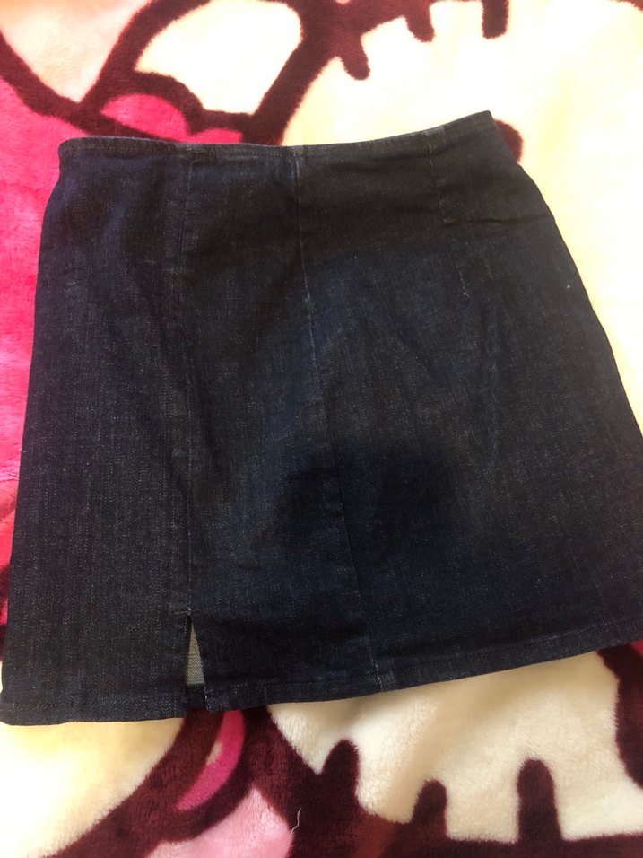 Lacivert mini denim etek, dar kesim ve önünde küçük yırtmaç ile rahat sokak stili için uygundur. Orijinal markadır. Sorunsuzdur.