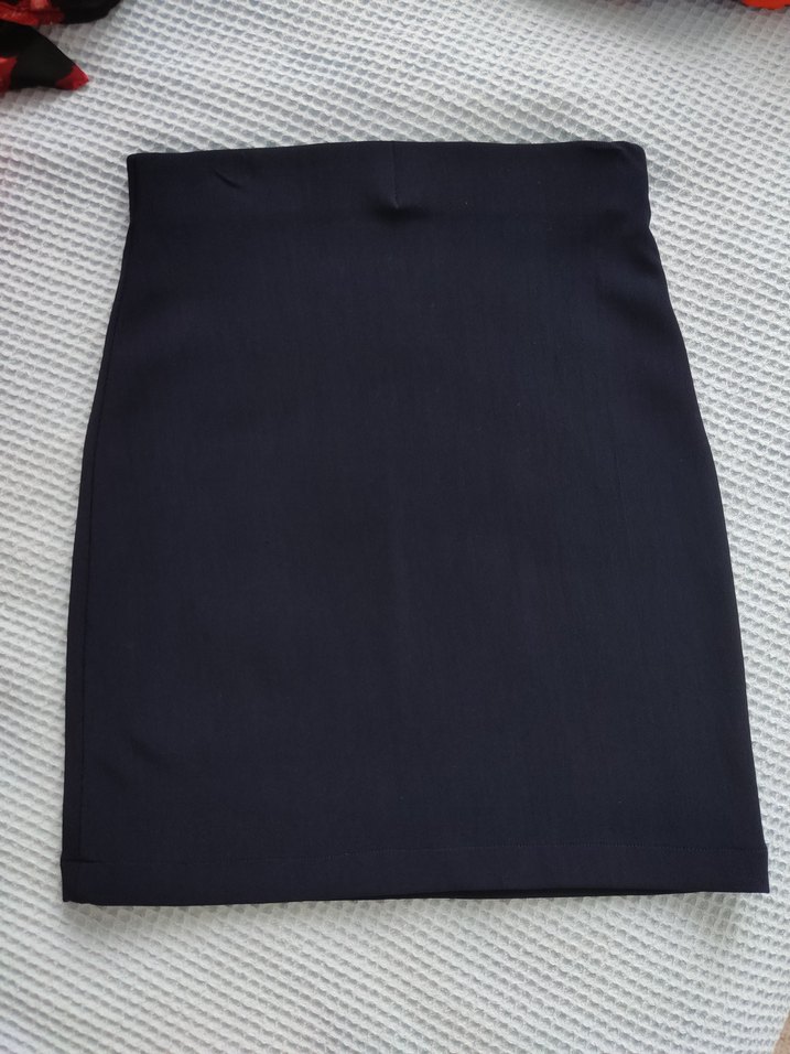 Lacivert, vücuda oturan, likralı/beli lastikli kadın mini etek. M-L beden uyumlu, temiz kullanıldı.